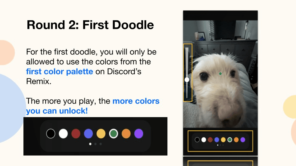 Our aim was to strike a delicate balance between providing users with creative freedom and preventing their drawings from becoming cluttered. In order to achieve this, we proposed implementing limitations that restrict the user's canvas. As guided by the drawing prompts, the photos are cropped or zoomed to better guide the user's drawing process and presents an additional layer of challenge to push their creative thinking.