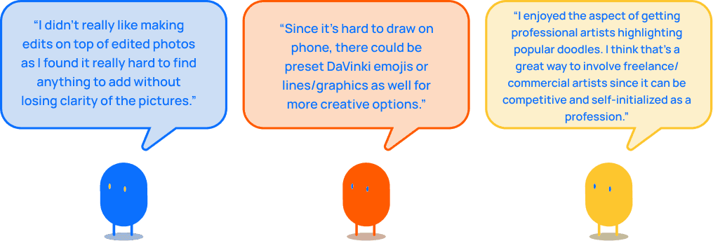 Based on the feedback we received throughout the two rounds of prototyping, we diligently addressed the app's shortcomings while also enhancing various aspects of DaVinki.