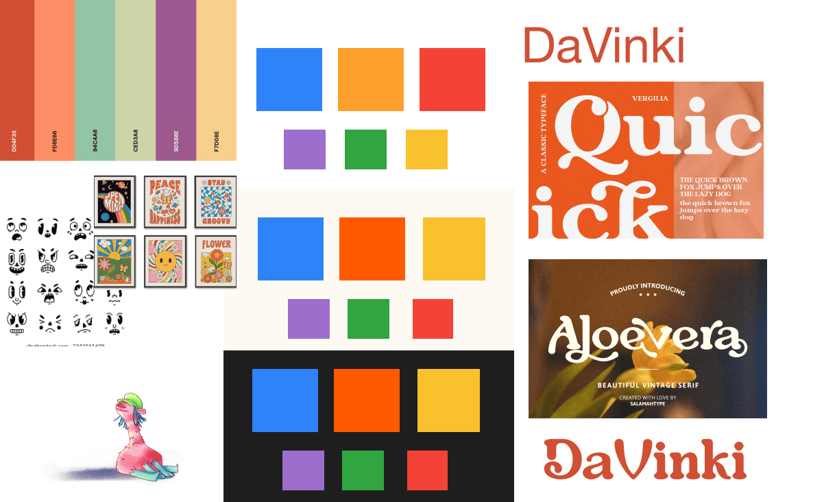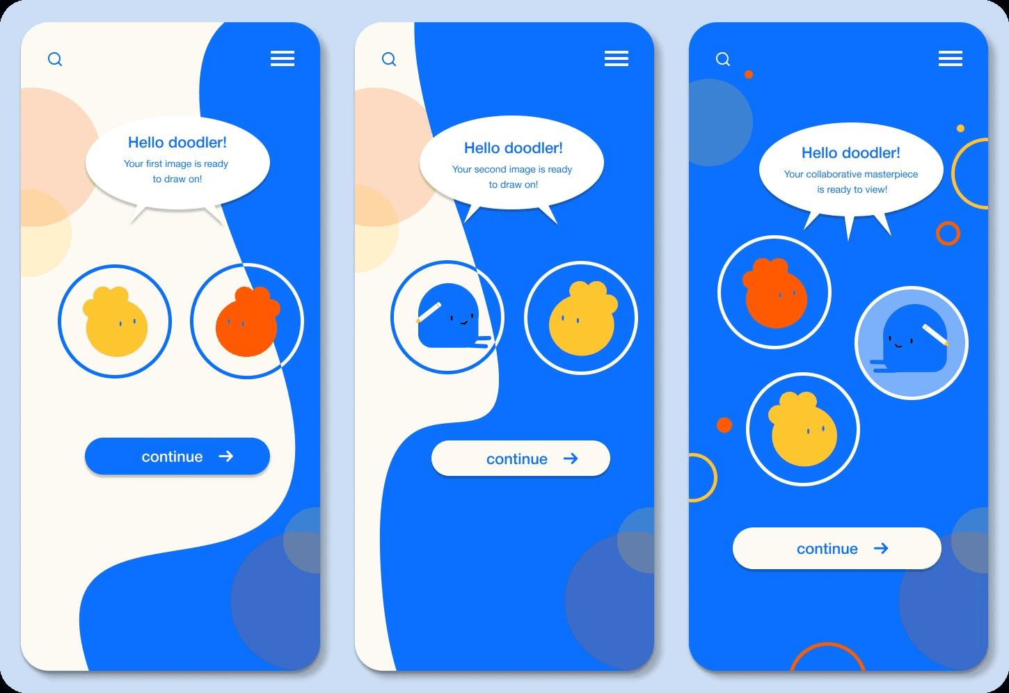 I had a lot of fun creating the overall aesthetic and designing the graphics, which included logos and a style guide. These elements were crucial for defining the theme of our app and ensuring design consistency during the prototyping process. The graphics were specifically crafted to promote doodling, utilizing cartoonish characters and primary colors to illustrate the basics of drawing.