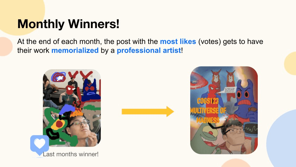 In an era where social interactions shifted almost entirely online, we found ourselves more connected than ever—yet oddly disconnected. Endless scrolling, passive interactions, and fleeting likes had replaced genuine engagement. As an enthusiast of online social interaction and a student in UC San Diego’s COGS 123 Social Computing course, I teamed up with four fellow researchers and designers to explore a better way to connect—one that was interactive, creative, and truly social.