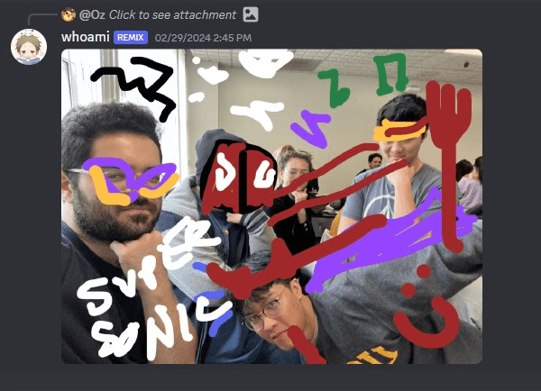 Users kept re-submitting the remix photo on the Discord channel because they thought it did not send through, which caused multiple of the same text to be sent (Discord glitch)