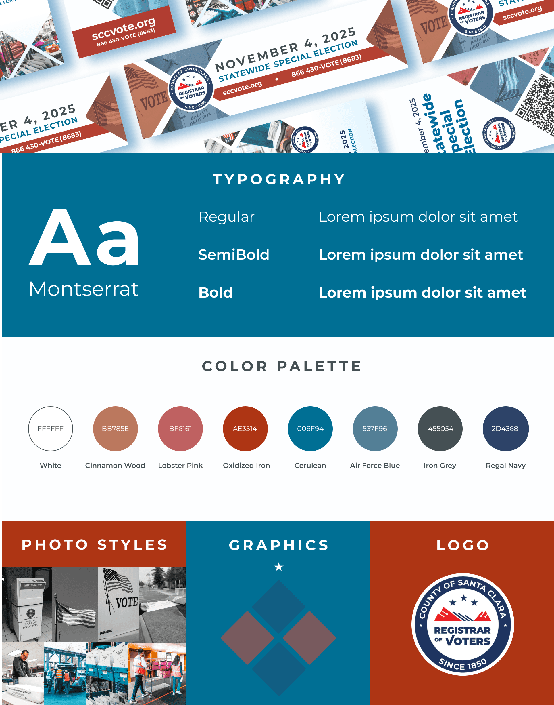 The Registrar of Voters (ROV) for Santa Clara County required a cohesive visual identity to promote the November 4, 2025 Statewide Special Election, which included the election of an Assessor, State Proposition 50, and Measure A.